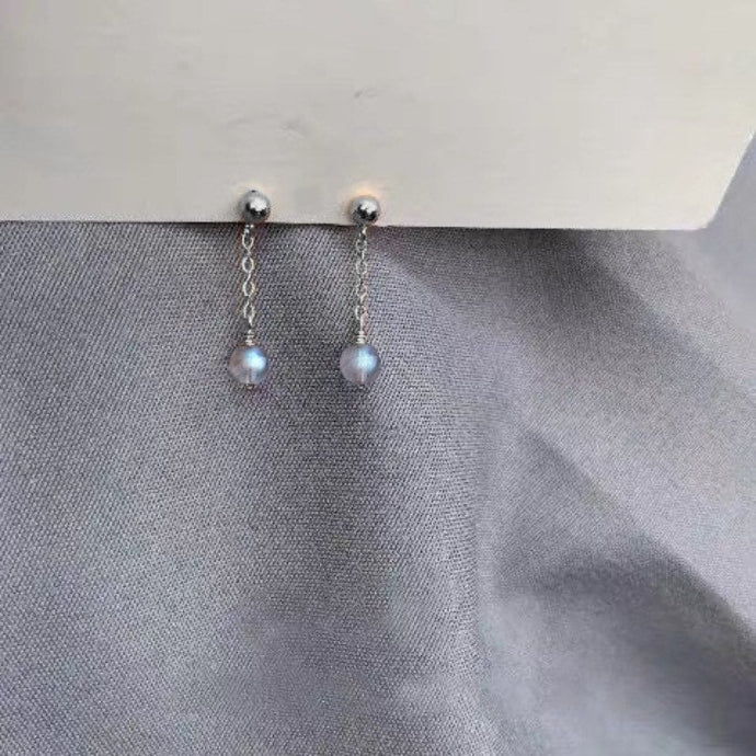 골드 도금/실버 5mm 미니 천연 래브라도라이트 스터드 스틸 귀걸이 3cm 미니멀리스트