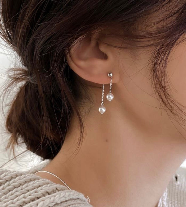 한국어 더블 짧은 실버 1.2mmx1mm 2-2.5cm 미니 스터드 체인 귀걸이 미니멀리스트