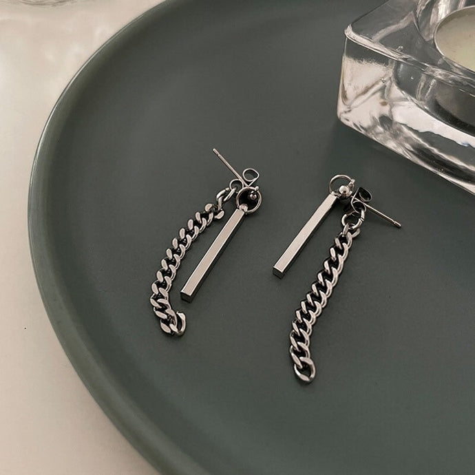 한국식 우아한 3mm 면 처리된 토르말린 블랙 체인 귀걸이 스테인레스 스틸 10cm