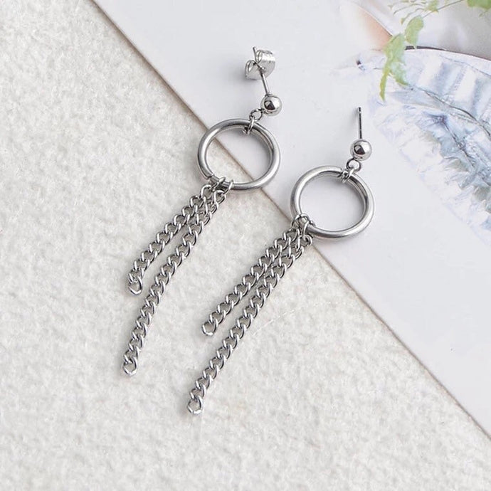 한국 실버 반지 10mm 체인 스터드 펑크 귀걸이