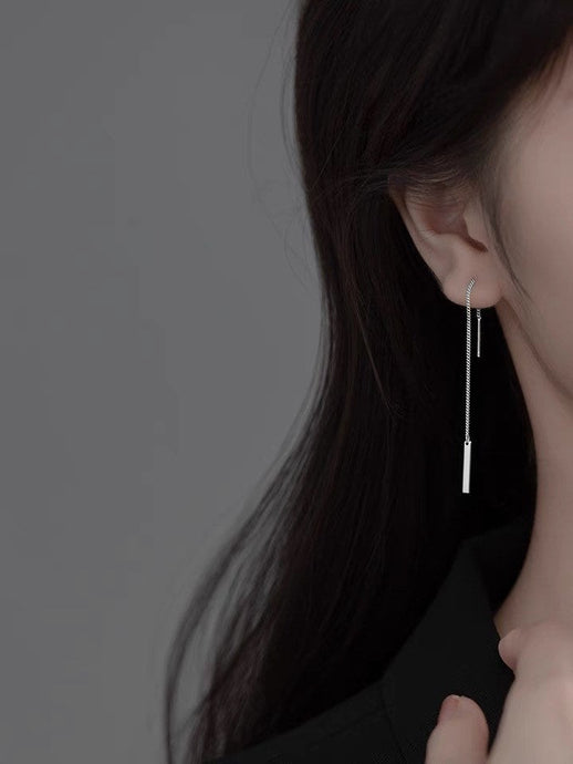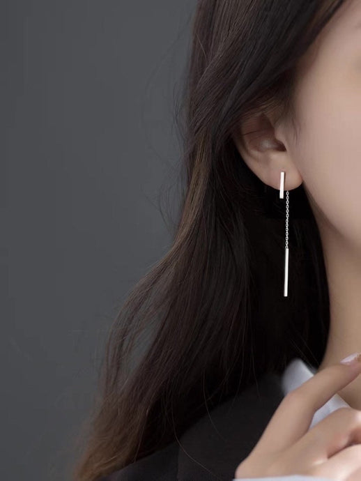 한국 실버 스테인레스 스틸 바 직사각형 기하학 체인 귀걸이 8cm