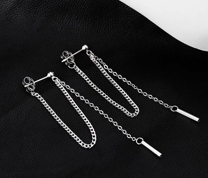 한국 스틸 더블 바 2cm 참 귀걸이 6cm