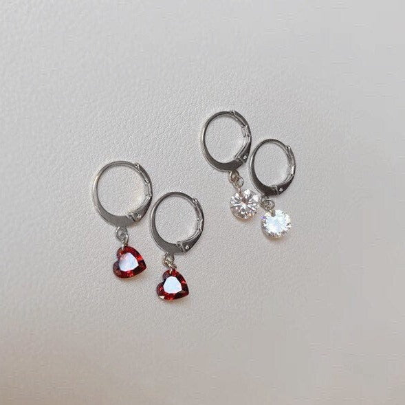 레드 하트 라운드 레버 백 후프 5-6mm 큐빅 지르코니아 스테인레스 스틸 귀걸이
