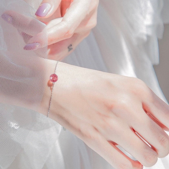 S925 단일 이동 비드 AAA 8mm 딸기 쿼트/자수정 6/7/8인치 팔찌(익스텐더 스프링 링 포함)