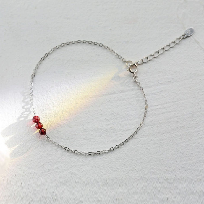 S925 작은 3mm 천연 브라질 레드 가닛 체인 팔찌 6/7/8 인치 익스텐더 미니멀리스트 탄생석 포함