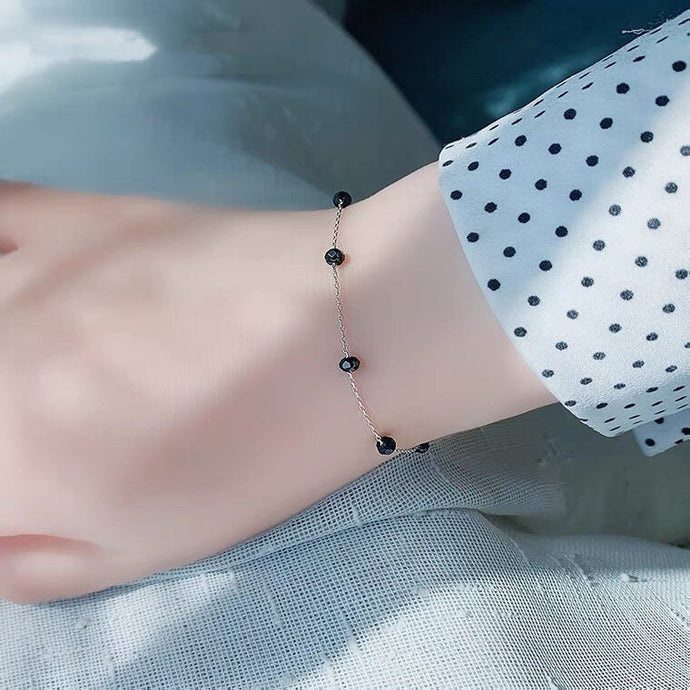 S925 스털링 실버 얇은 1.1mm 우아한 체인 3-4mm 천연 블랙 토르말린 연마 비즈 팔찌 6/7/8인치 익스텐더 포함