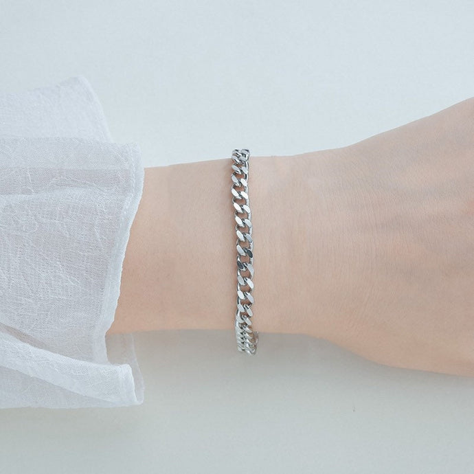 솔리드 스테인레스 스틸 3.8-4mm 청키 쿠바 체인 팔찌 6/7/8인치 익스텐더 포함