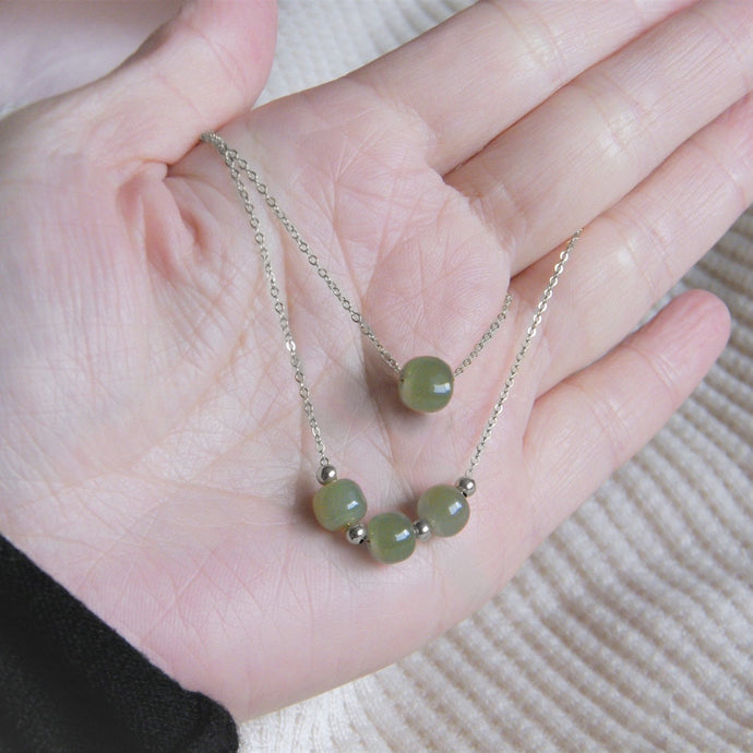 단일 구슬/트리플 구슬 녹색 정통 미처리 연옥 옥 Hetian Jade 10x9mm 목걸이 16-18 인치 봄 반지
