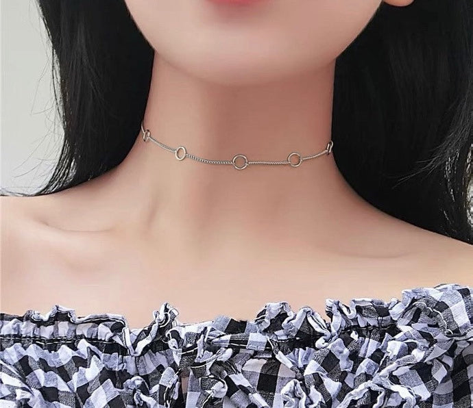 솔리드 스테인레스 스틸 6-7mm 작은 원형 링 목걸이 14/15/16인치(익스텐더 포함)