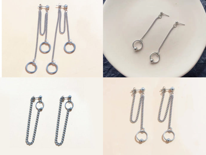 스테인레스 스틸 한국식 1.2x1mm 체인 스터드 더블 피어싱 귀걸이 4.5cm