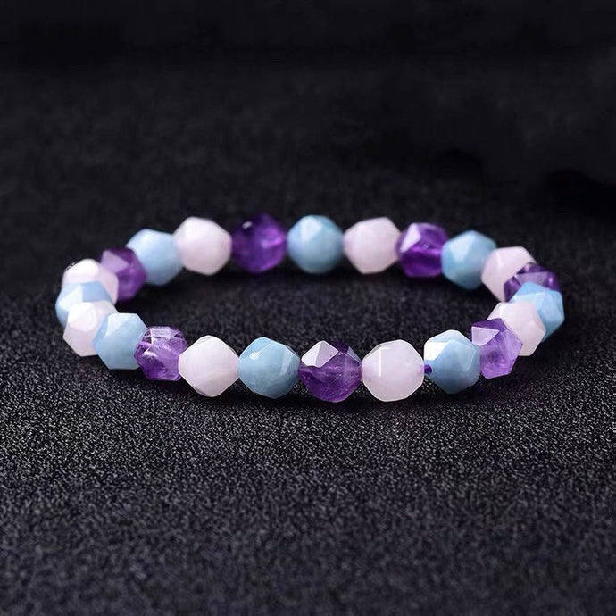 스타 컷 면 처리된 천연 아쿠아마린 자수정 로즈 쿼츠 탄성 7-8mm 스트레치 스트링 팔찌