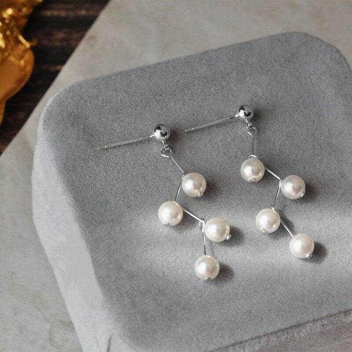 스틸 한국 패션 Kpop 크로스 체인 스터드 5mm 크리스탈 진주 귀걸이 6cm