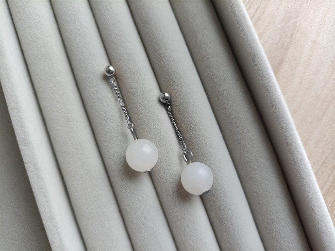 스틸 한국어 Kpop 스타일 4mm 비즈 2X3mm 짧은 체인 귀걸이 스터드 트렌드 남여 2-2.5cm