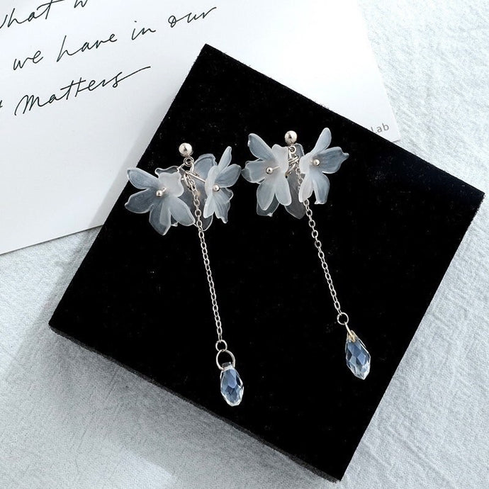 스터드 한국 패션 화이트 아크릴 꽃 귀걸이 8cm 무지개 눈물 드롭 연마된 구슬