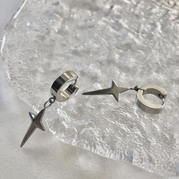 수술용 스테인레스 스틸 4개 뾰족한 별 후프 귀걸이 Kpop 펑크 4cm 저자극성