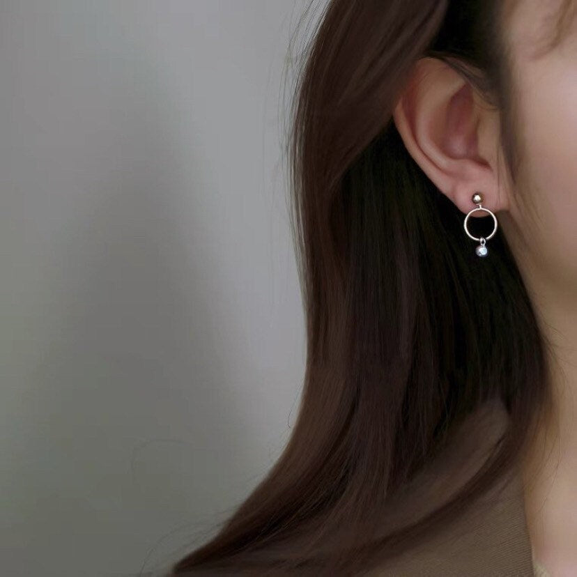 기하학적 강철 10mm 원형 링 4mm 솔리드 비즈 귀걸이 스터드