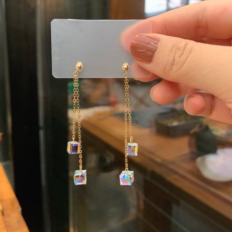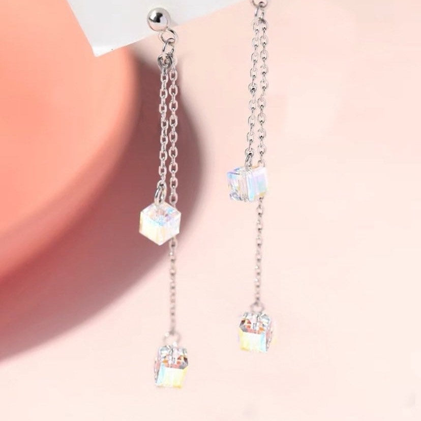 골드 도금/실버 체인 스몰 클리어 Ab 레인보우 큐브 설탕 크리스탈 오스트리아 미니 6mm 귀걸이 7cm