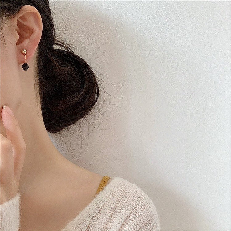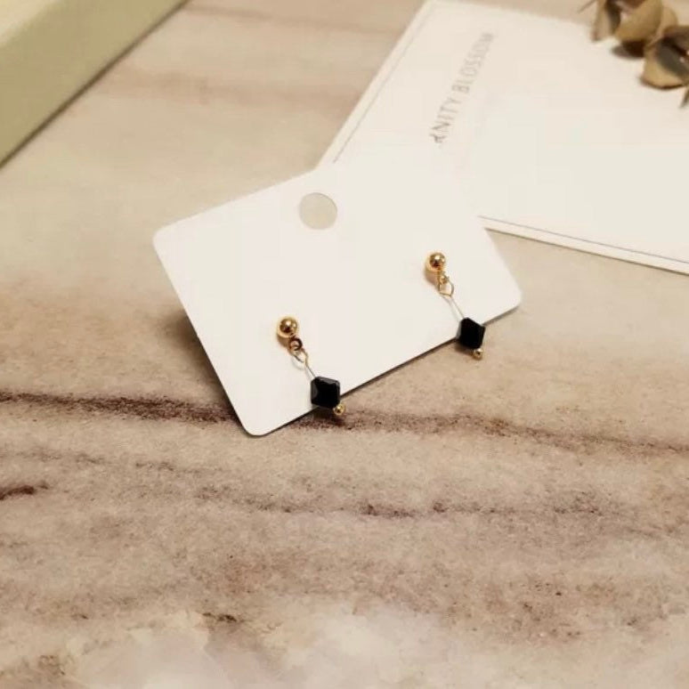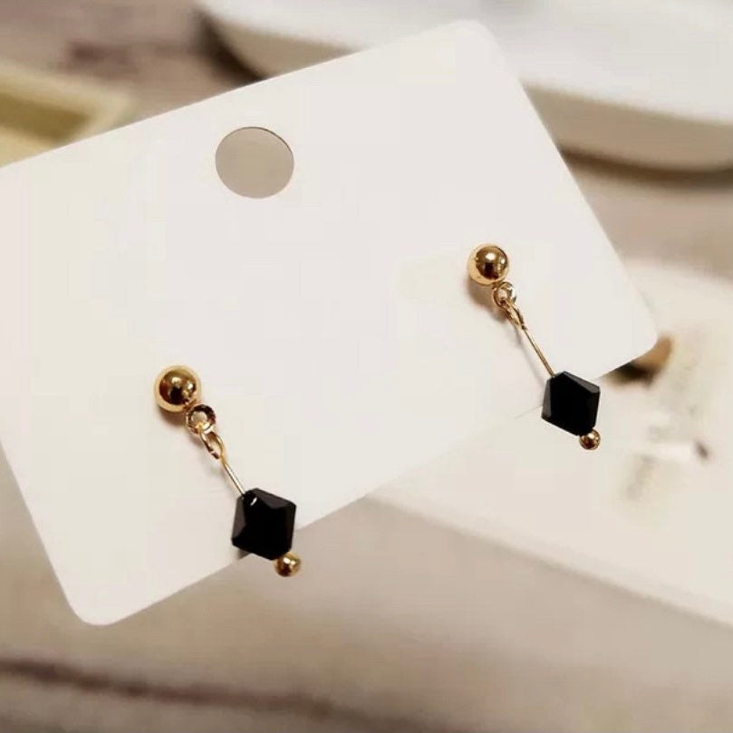 금 도금 강철 한국 패션 블랙 연마 오스트리아 크리스탈 6mm 테이퍼 비즈 귀걸이