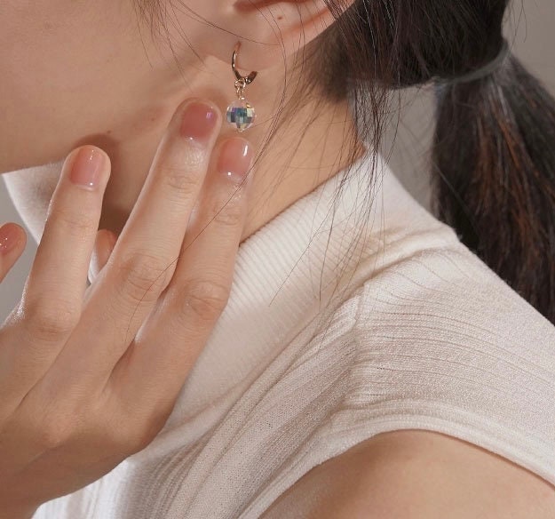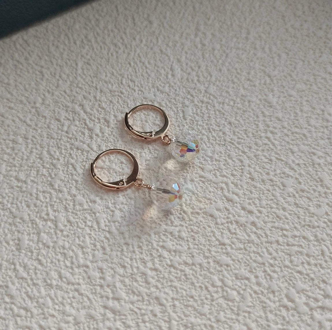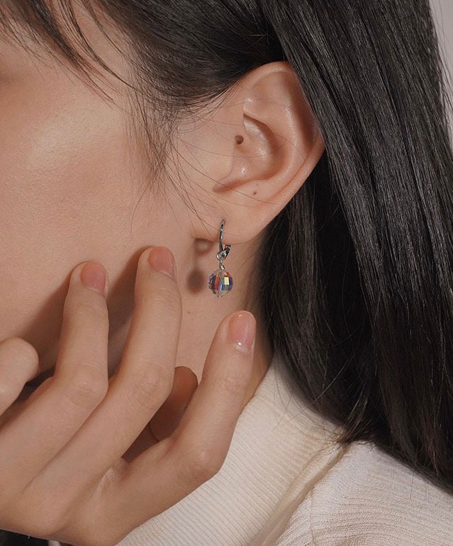 금 도금/수술용 강철 8mm 투명 Ab 유리 크리스탈 비즈 후프 귀걸이