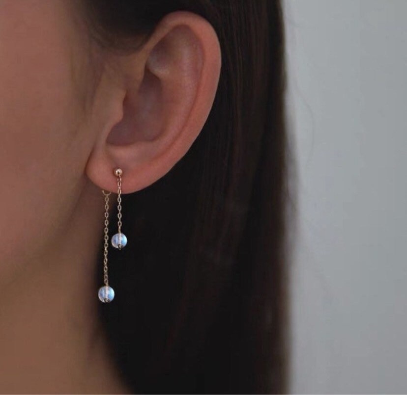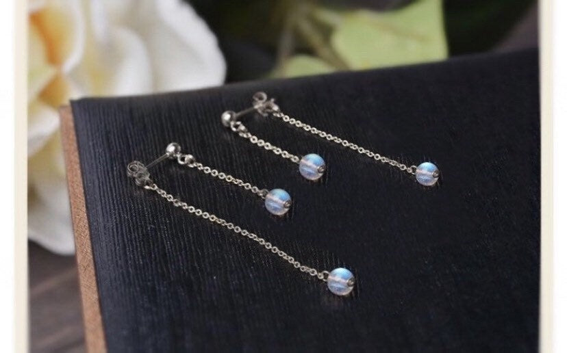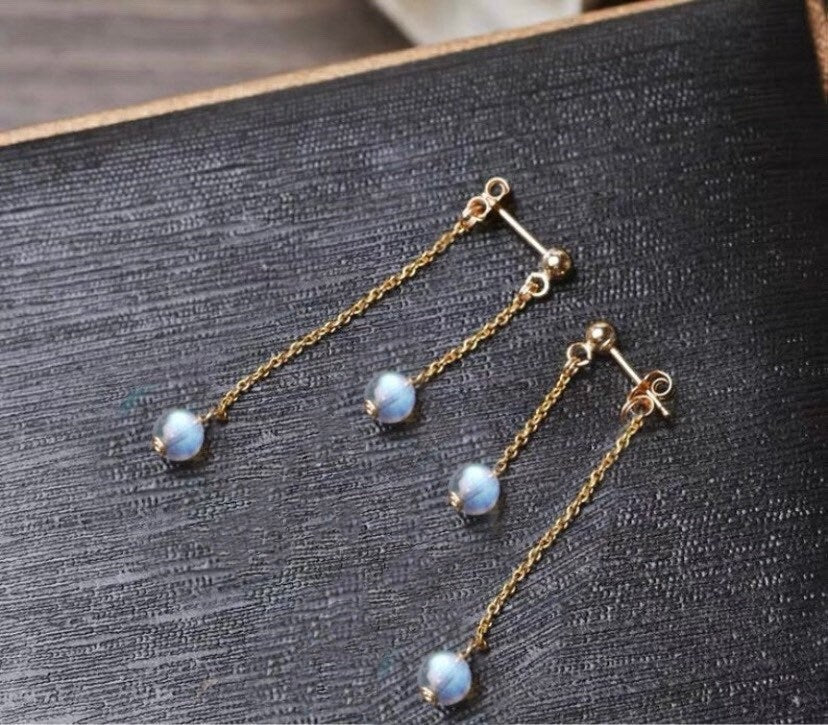 골드/실버 스테인레스 스틸 5mm AAA 크리스탈 천연 래브라도라이트 귀걸이 6cm