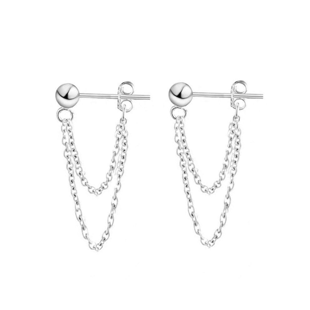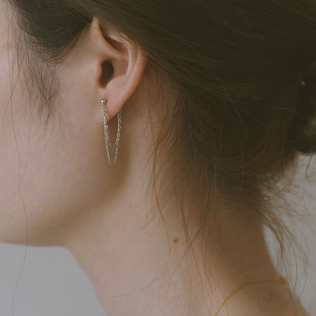 한국 더블 실버 1.2x1mm 체인 5cm 스터드 귀걸이