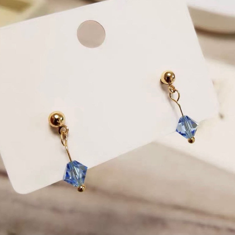 한국 패션 블루 면처리 오스트리아 크리스탈 6mm 테이퍼드 비드 귀걸이