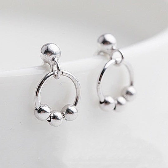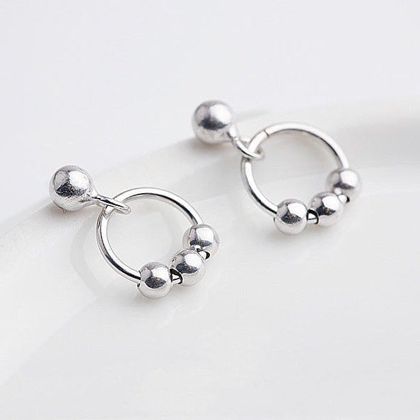 한국 패션 미니멀리스트 10mm 원형 링 4mm 비즈 스틸 귀걸이