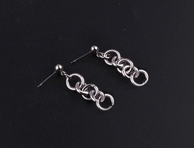 한국 패션 펑크 스틸 10x10mm 원형 링 귀걸이