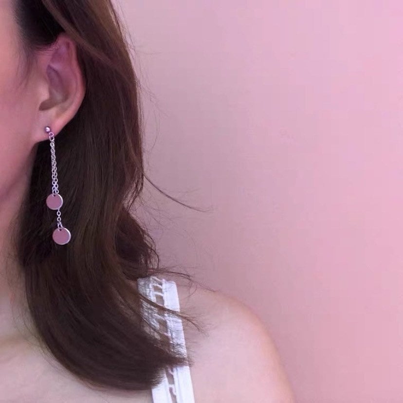 한국 패션 스틸 체인 8mm 원형 원형 참 귀걸이 6cm