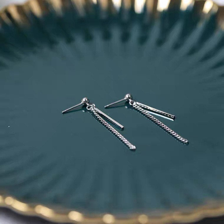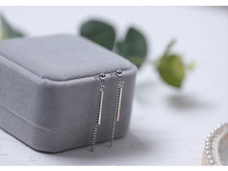한국 펑크 2cm 스틸 직사각형 참 체인 귀걸이 4cm