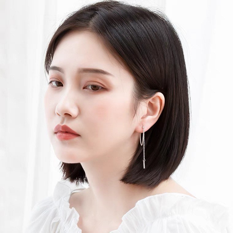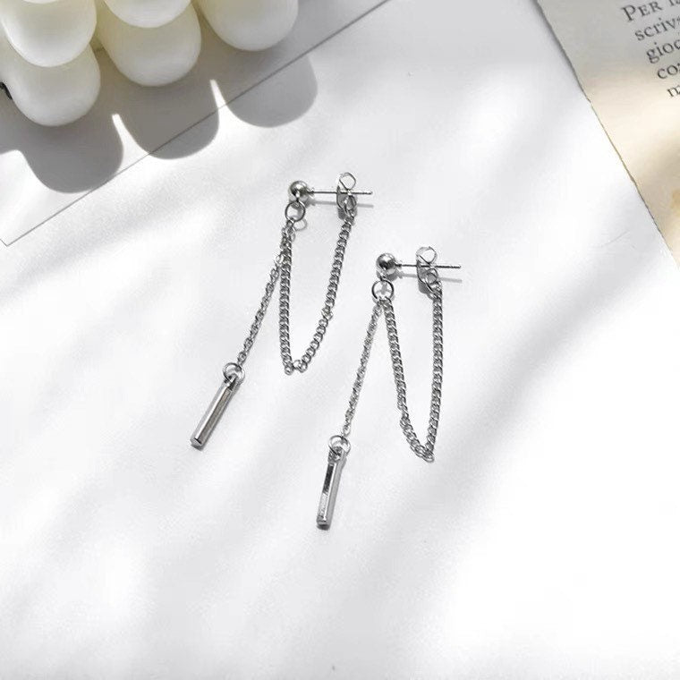 한국 솔리드 스테인레스 스틸 1.5cm 직사각형 스틱 참 귀걸이 5cm