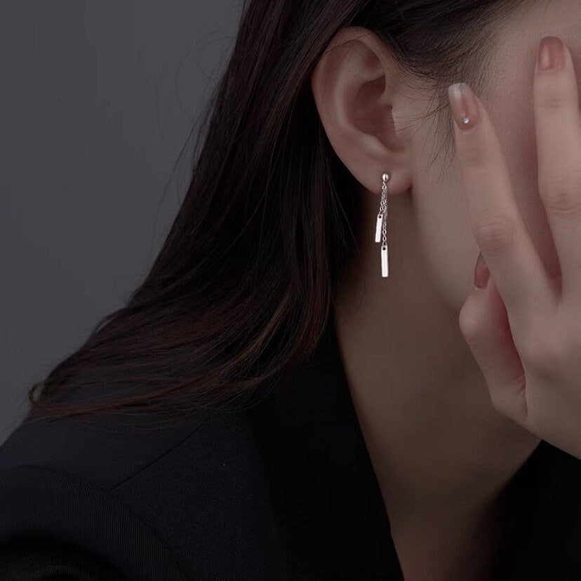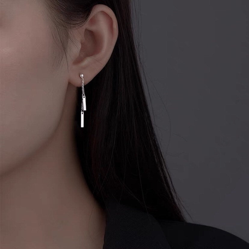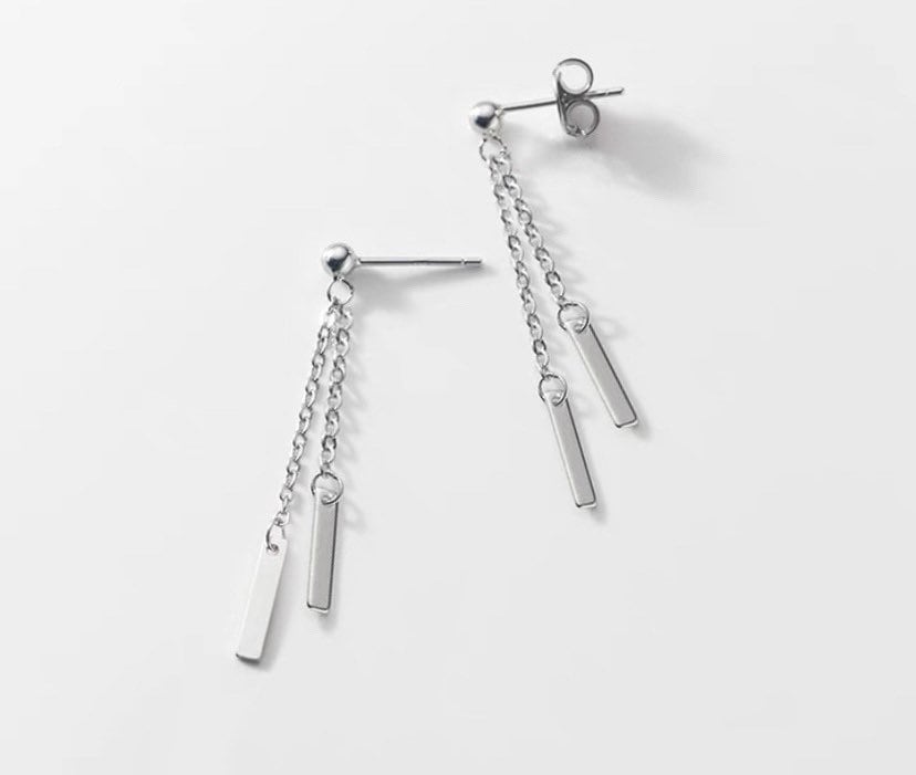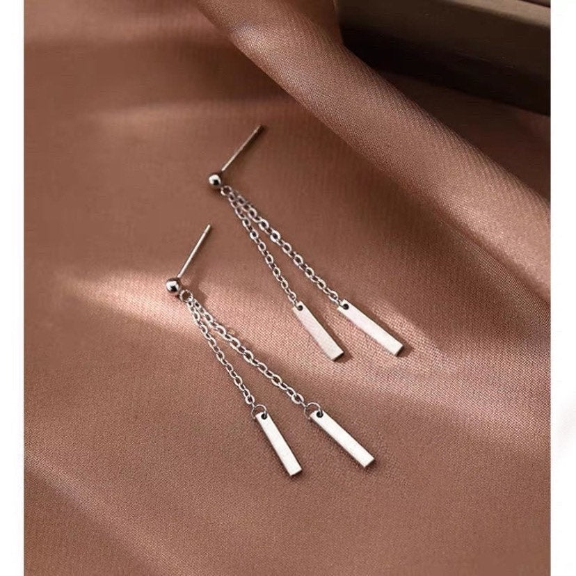 한국 스틸 더블 바 2cm 참 귀걸이 6cm