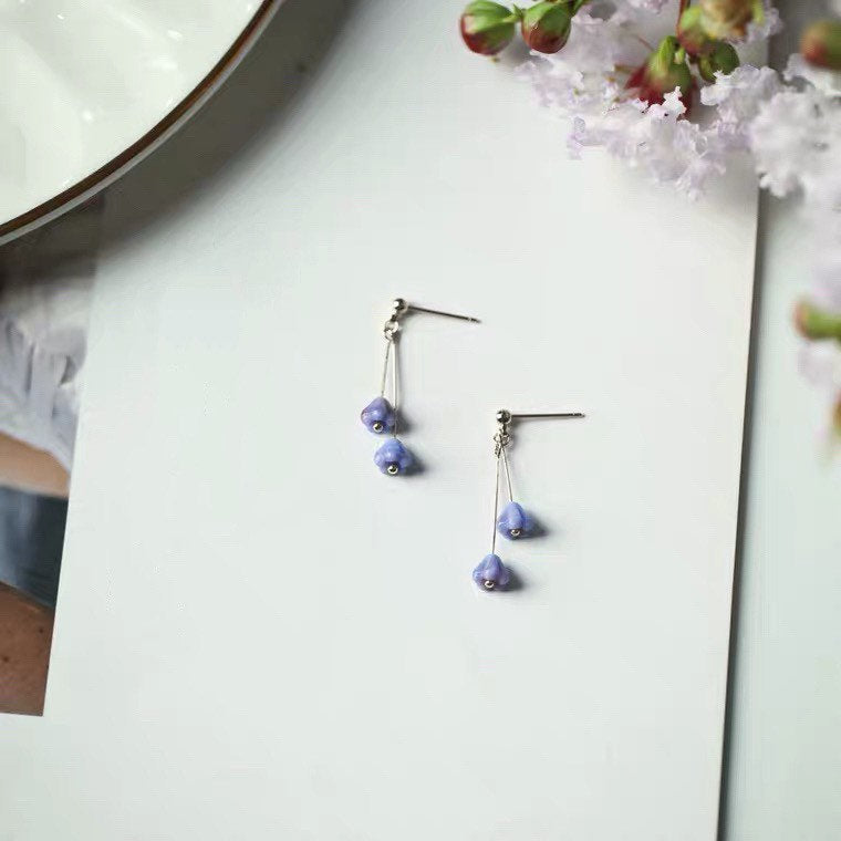 한국 스틸 유리 베이비 벨 플라워 블루 라즈베리 6x4mm 귀걸이