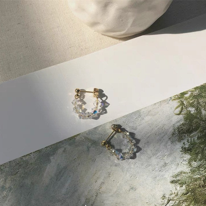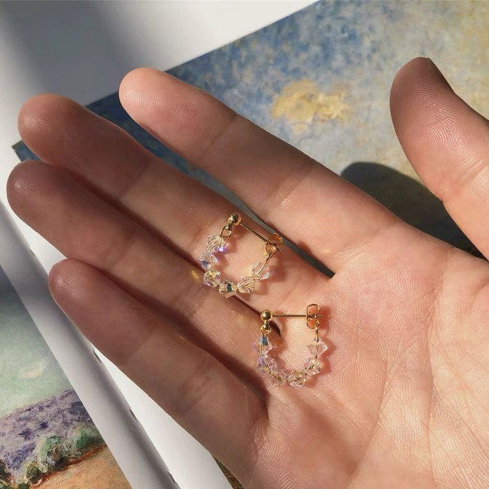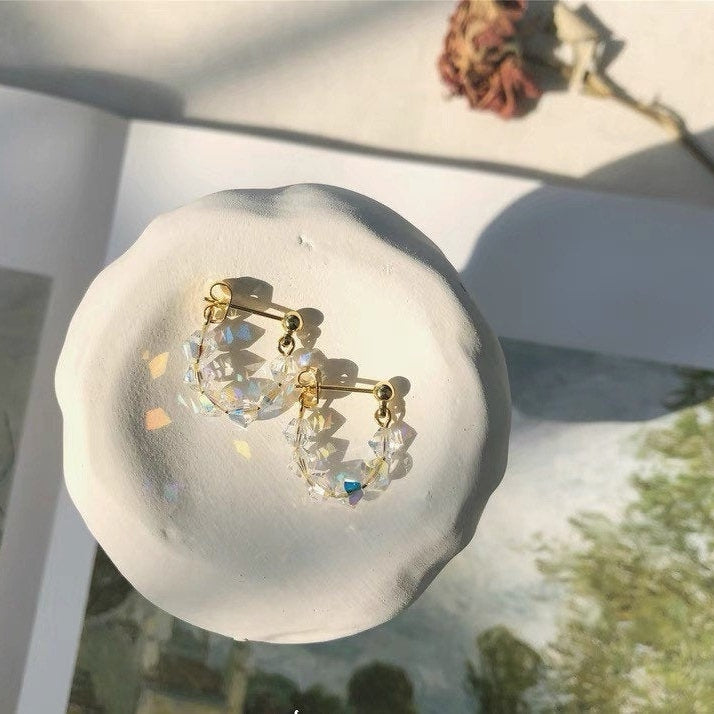 한국 스터드 4mm 클리어 AB 레인보우 면처리된 크리스탈 테이퍼드 비드 귀걸이