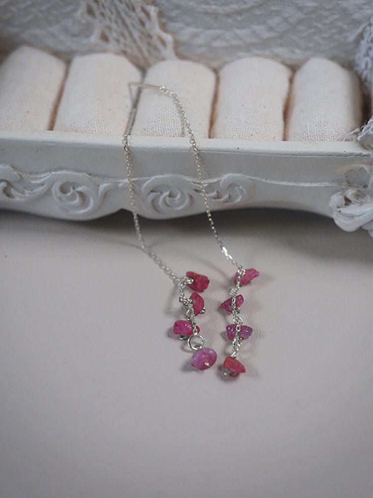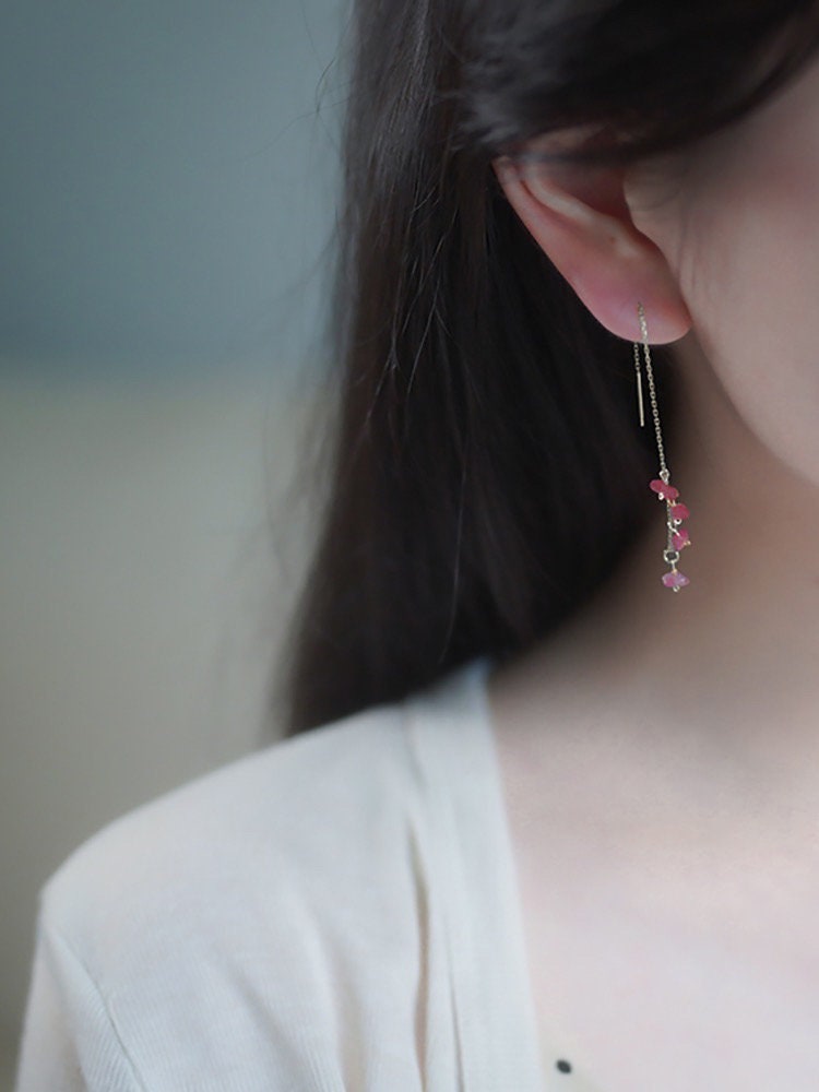 한국 스타일 우아한 4mm 전기석 칩 핑크 스레더 체인 스틸 귀걸이 10cm
