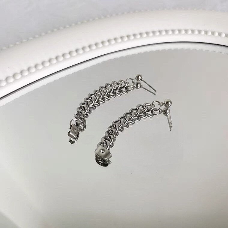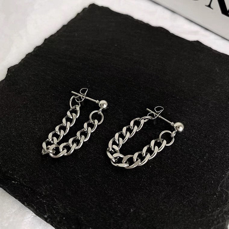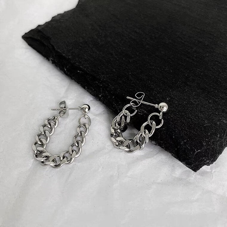한국 스타일 펑크 솔리드 3.8mm 스테인레스 스틸 청키 쿠바 체인 귀걸이 3cm