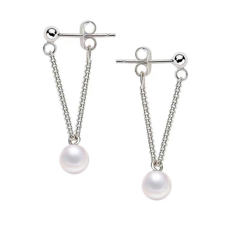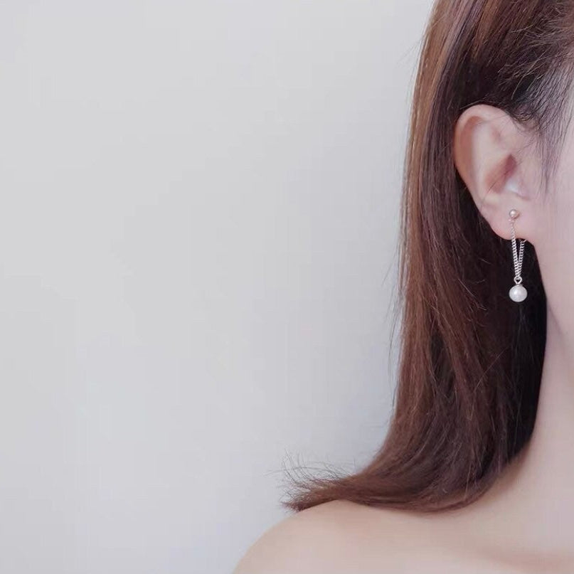 한국식 강철 체인 8mm 크리스탈 진주 귀걸이
