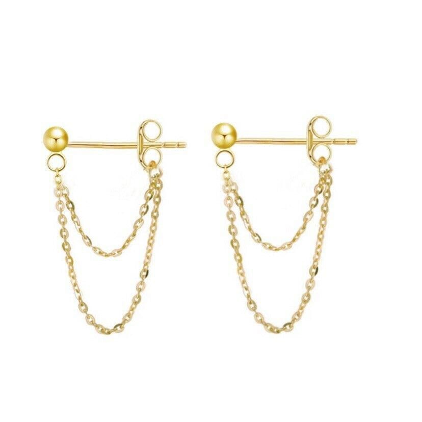 미니멀리스트 18K 골드 도금 더블 체인 귀걸이 5cm