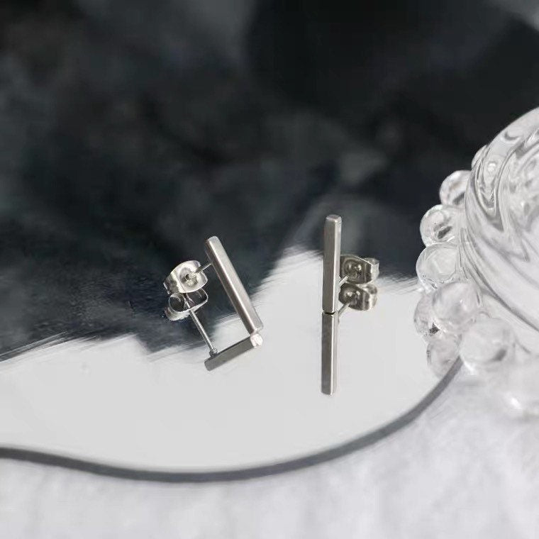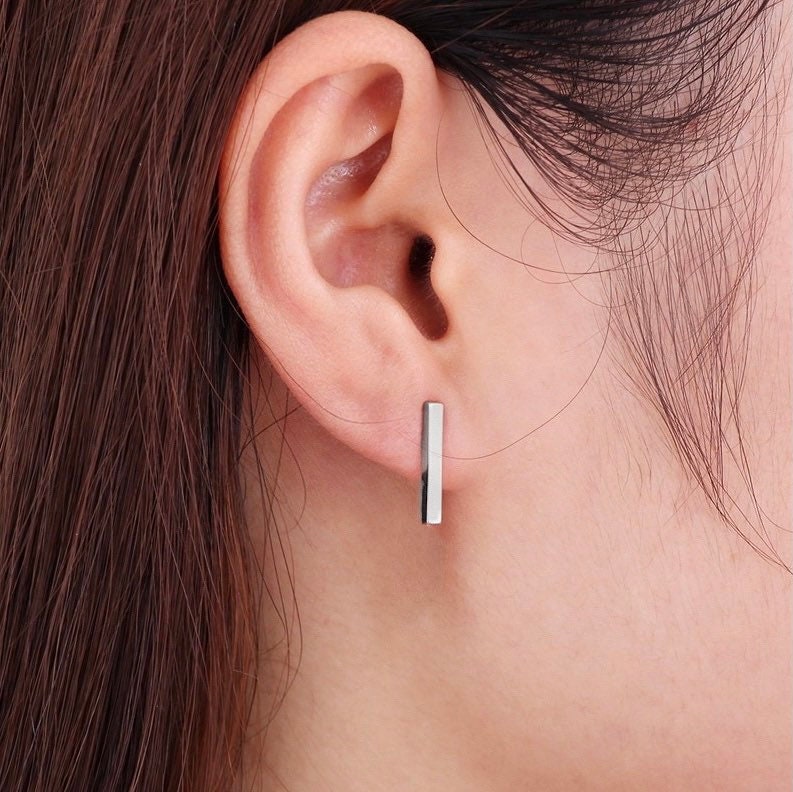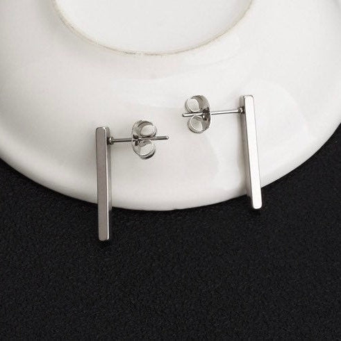 미니멀리스트 스타일 15mm 스테인레스 스틸 바 귀걸이 스터드 남녀공용