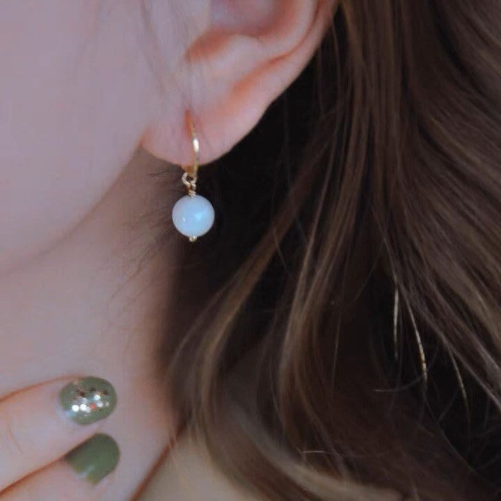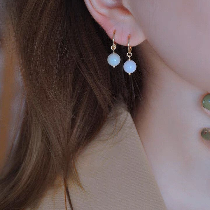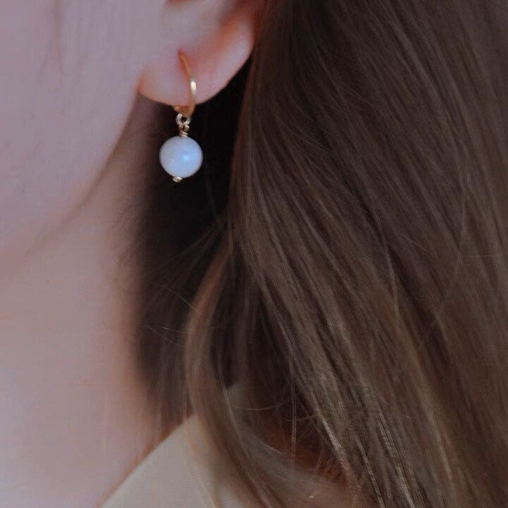 미니멀리스트 스타일 18K 골드 도금 8mm 천연 백옥 귀걸이 후프