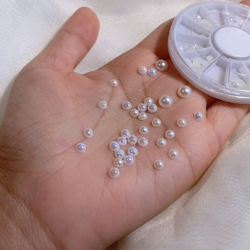 네일 아트 휠 다양한 크기 플랫백 고품질 진주 레인보우 진주 1박스