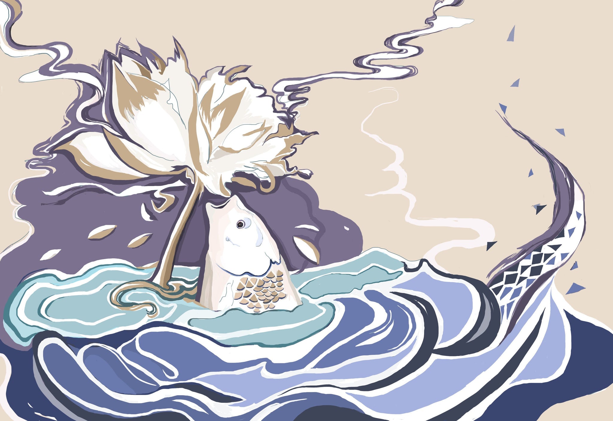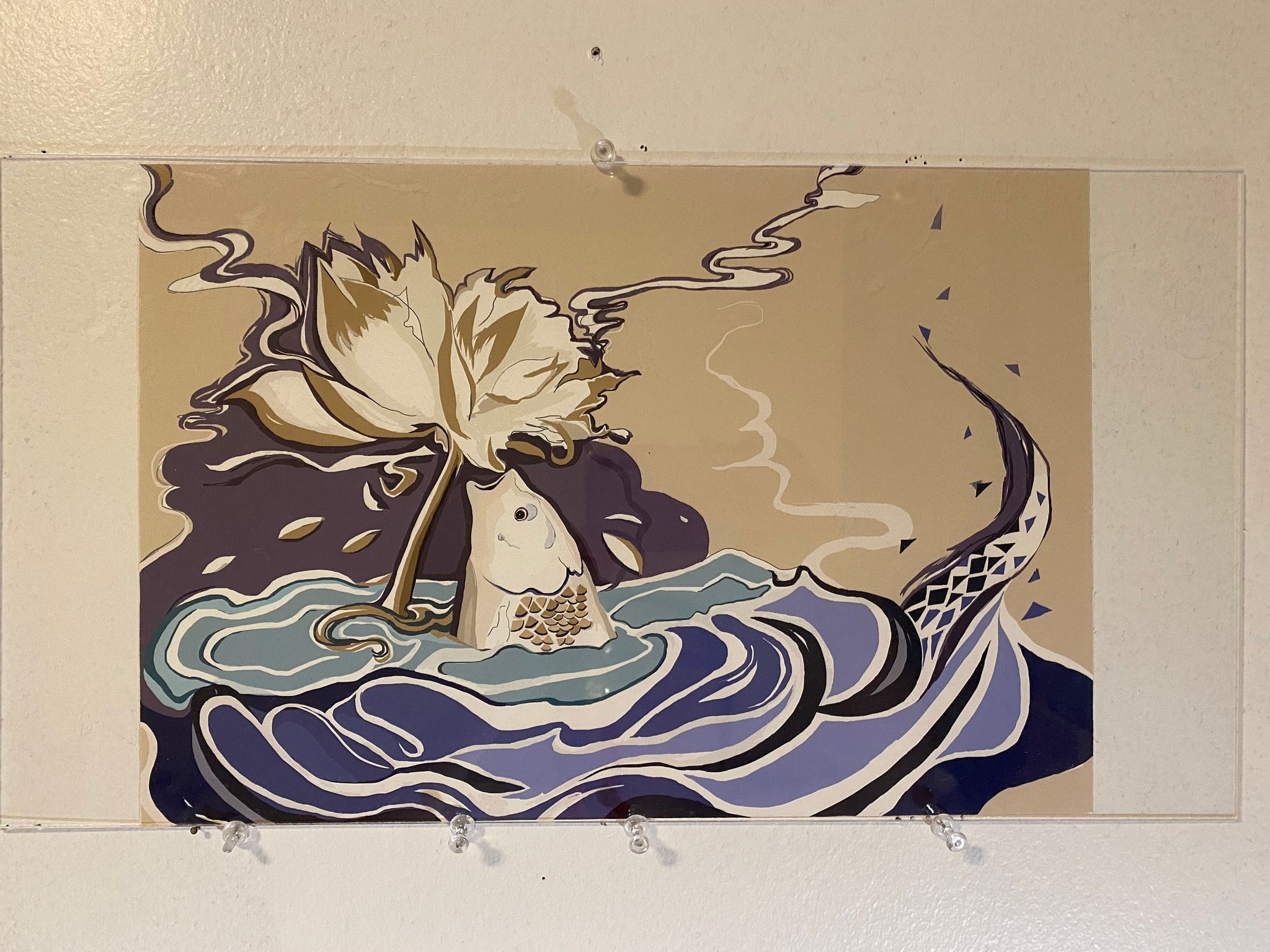 실제 인쇄 고급 질감 무광택 종이 중국 이야기 물고기와 꽃 디지털 인쇄 13x9인치 유리 프레임 없음 프레임 없음