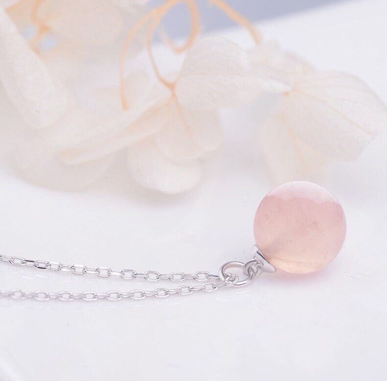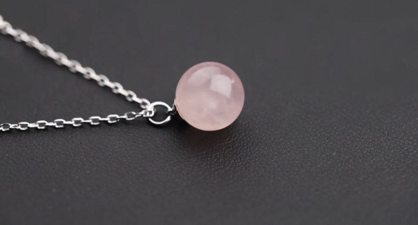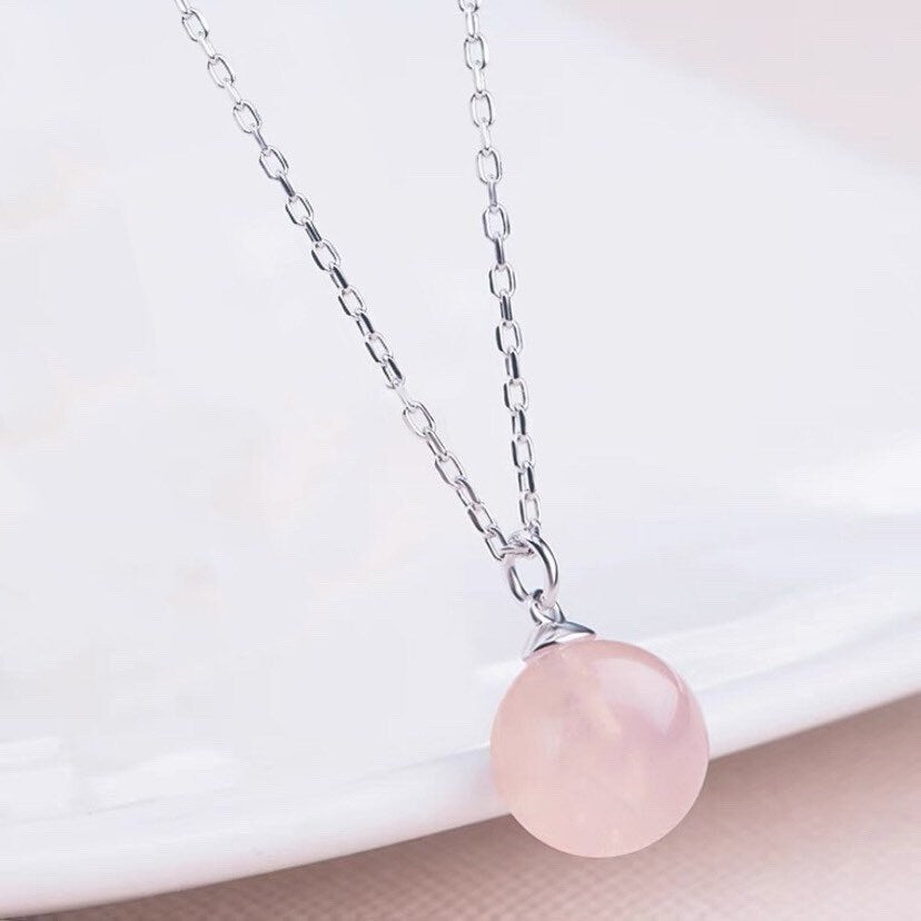 S925 실버 8mm 보석 천연 로즈 쿼츠 목걸이 16인치 + 1인치 익스텐더 스프링 링