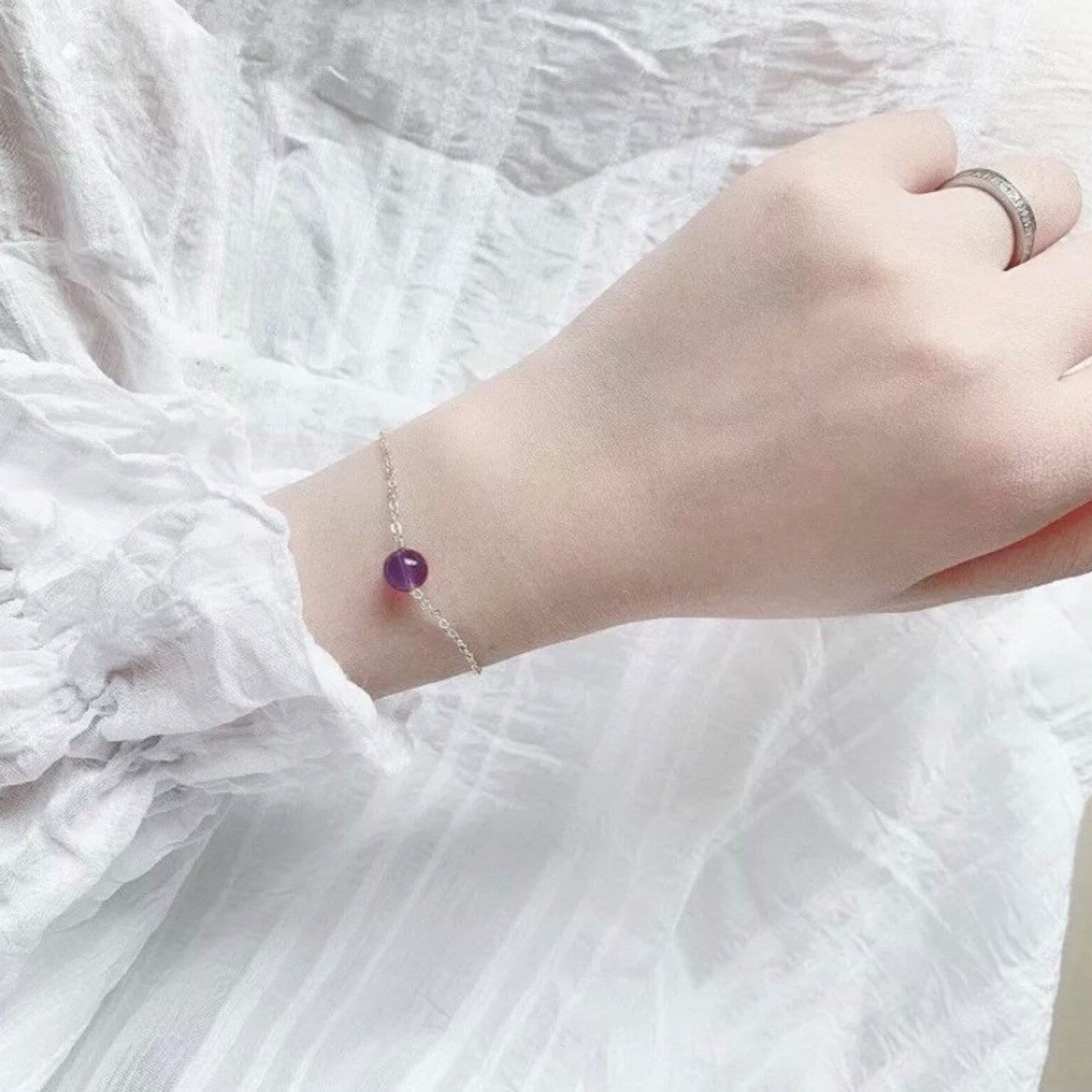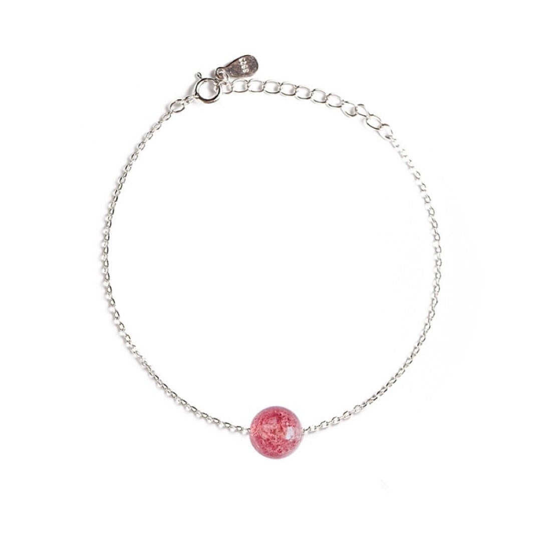 S925 단일 이동 비드 AAA 8mm 딸기 쿼트/자수정 6/7/8인치 팔찌(익스텐더 스프링 링 포함)