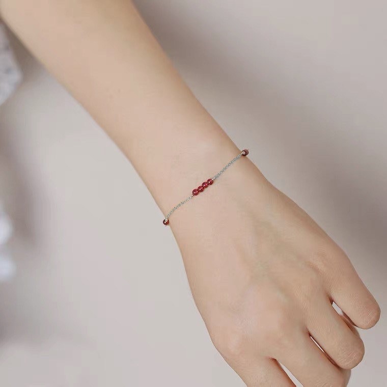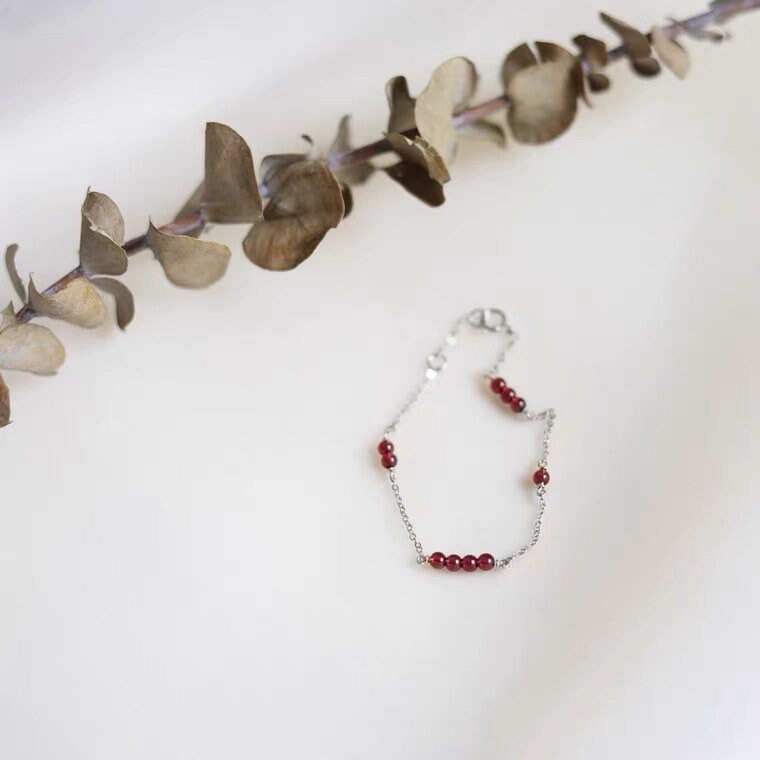 S925 스프링 링 소형 3mm 가넷 팔찌 6/7/8인치 + 0.25인치 익스텐더