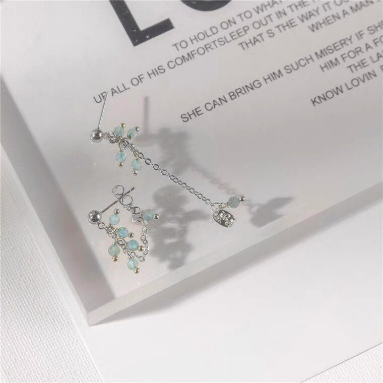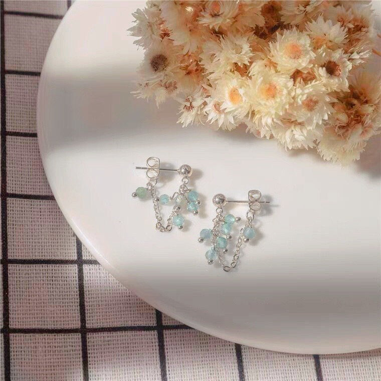실버 체인 4mm 라이트 블루 아쿠아마린 연마 비즈 귀걸이