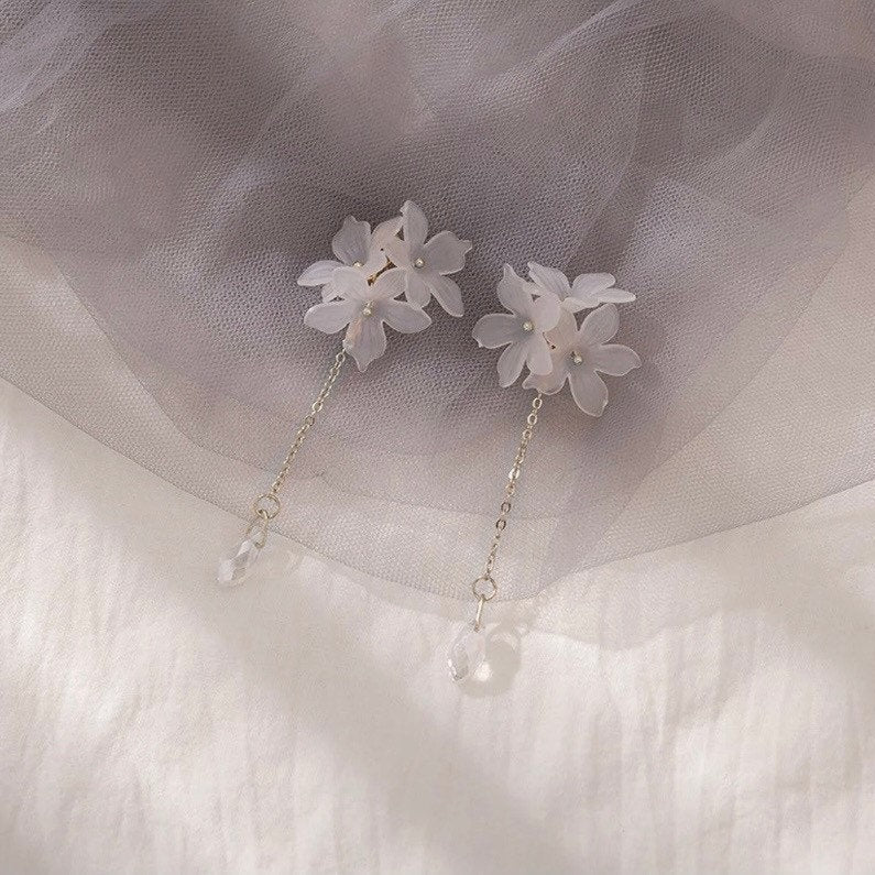 스터드 한국 패션 화이트 아크릴 꽃 귀걸이 8cm 무지개 눈물 드롭 연마된 구슬