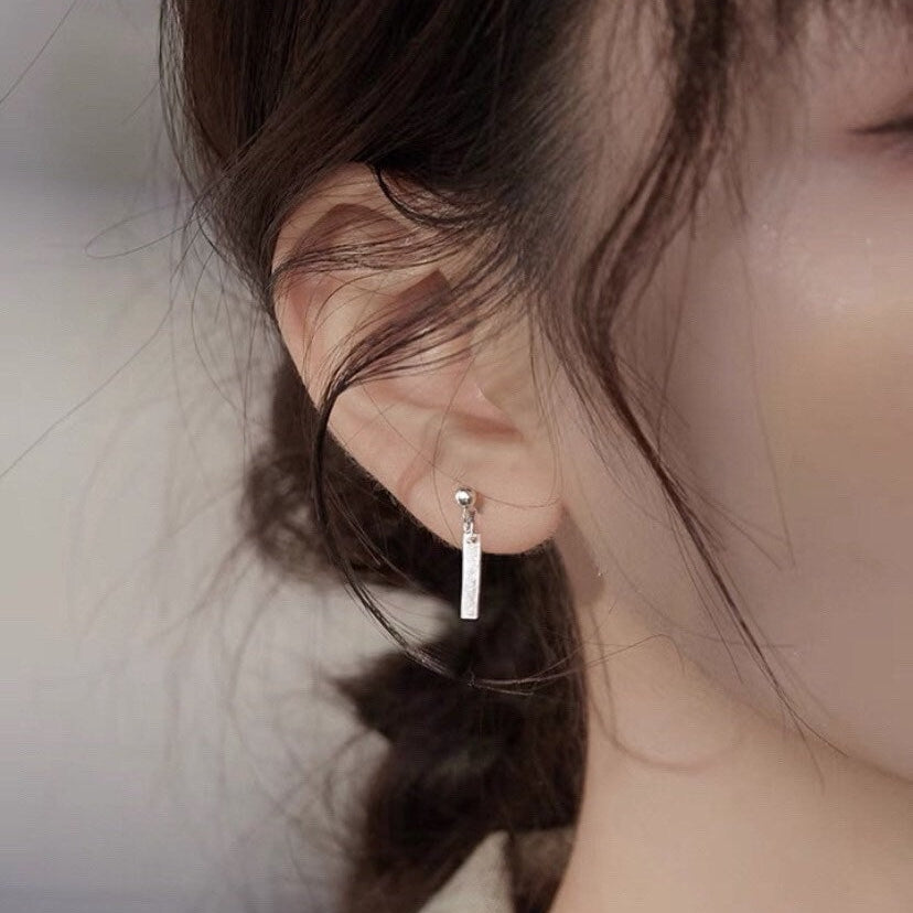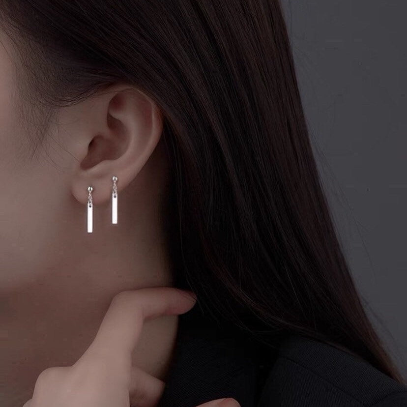 스테인레스 스틸 2cm 직사각형 참 스터드 귀걸이 남여 공용 미니멀리스트 펑크