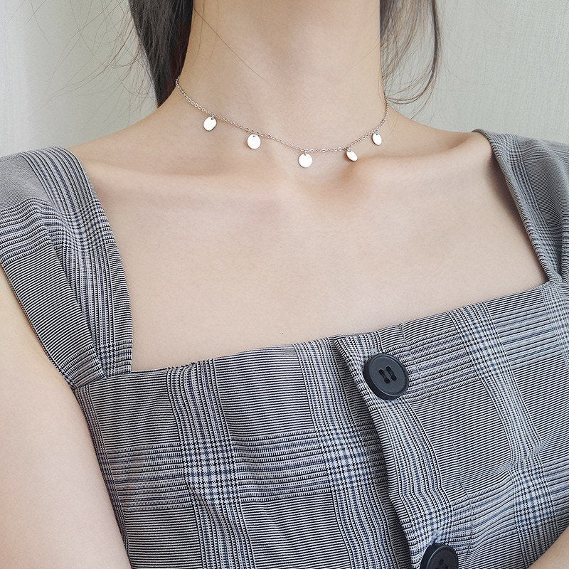 8mm 원형 참 목걸이가 포함된 스테인레스 스틸 초커 케이블 체인 14-16인치