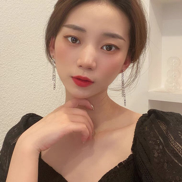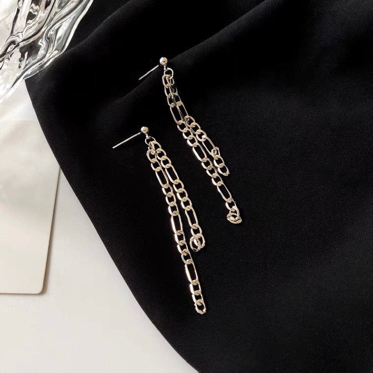스테인레스 스틸 더블 피가로 체인 스터드 한국 패션 귀걸이 4.5cm